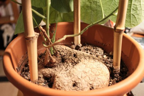 Nach vier Monaten Pause treibt die Stephania venosa wieder aus. Die hellgrüne Farbe des Austriebs ist vermutlich auf die dunkle und etwas kühlere Kammer zurückzuführen, in der ich die ruhenden Caudexpflanzen derzeit immer parke. Die Ranken sollten sich demnächst wieder etwas verdunkeln, wenn die Pflanze nun wieder etwas Licht abbekommt.