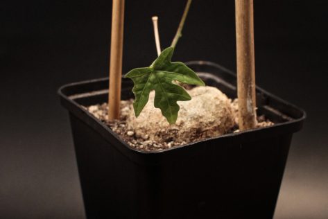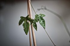 Wenn einem im Internet die Adenia lindenii begegnet, fällt sie einem direkt durch die hübsch gescheckten Blätter auf: Google-Bildersuche. Ich kam nicht umhin, mir schlussendlich doch eine zuzulegen und habe ein kleines Exemplar relativ günstig in einem Online-Shop bestellt. Die A. lindenii hatte zunächst rein grüne Blätter, nach ca. vier Wochen am hellem Sonnenplatz auf dem Fensterbrett entdeckte ich zum ersten Mal die charakteristische Blattmaserung.