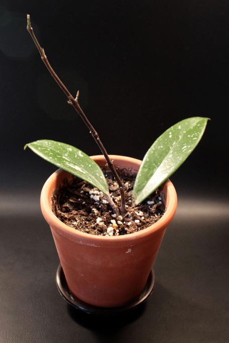 Einen kleinen Schwerpunkt meiner Sammlung bilden Hoyas, Wachsblumen. Letztes Jahr im Oktober hatte ich eine Reihe von bewurzelten Stecklingen bekommen und sie in Töpfe gesetzt. Seither ist wenig passiert. In den letzten Wochen haben die meisten der kleinen Pflanzen angefangen, neue Triebe bzw. neue Blätter auszubilden.